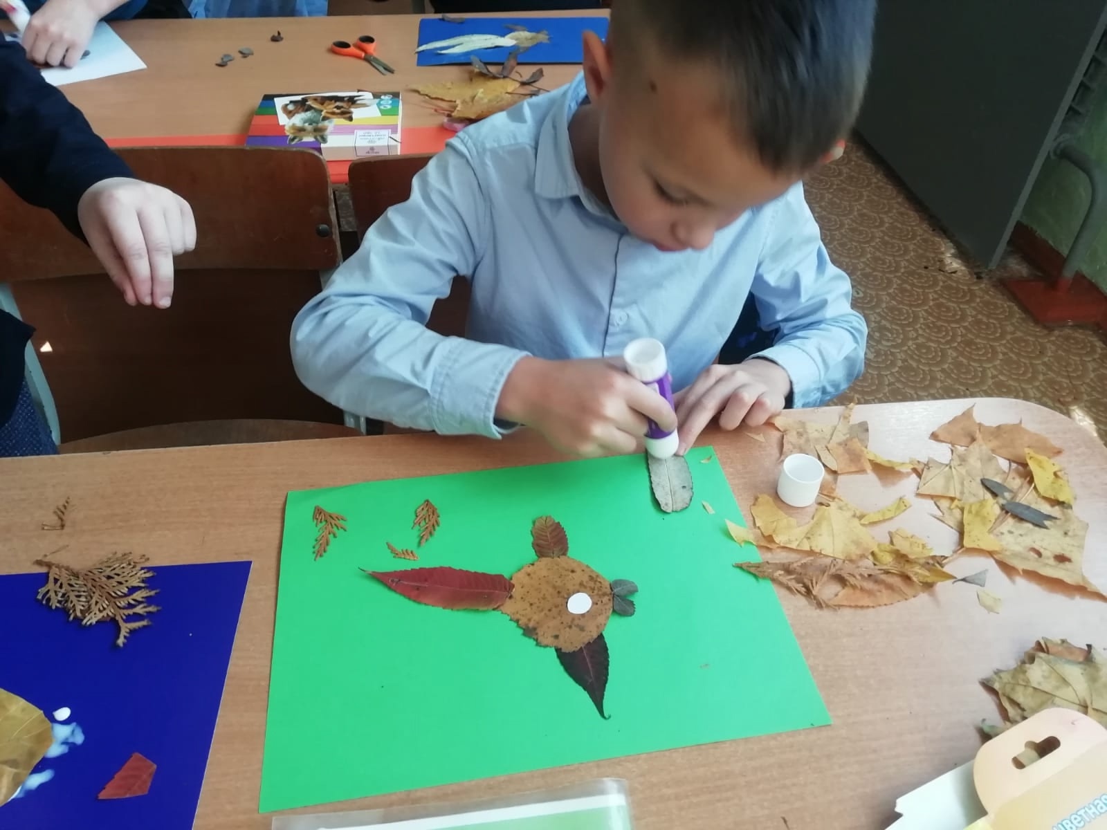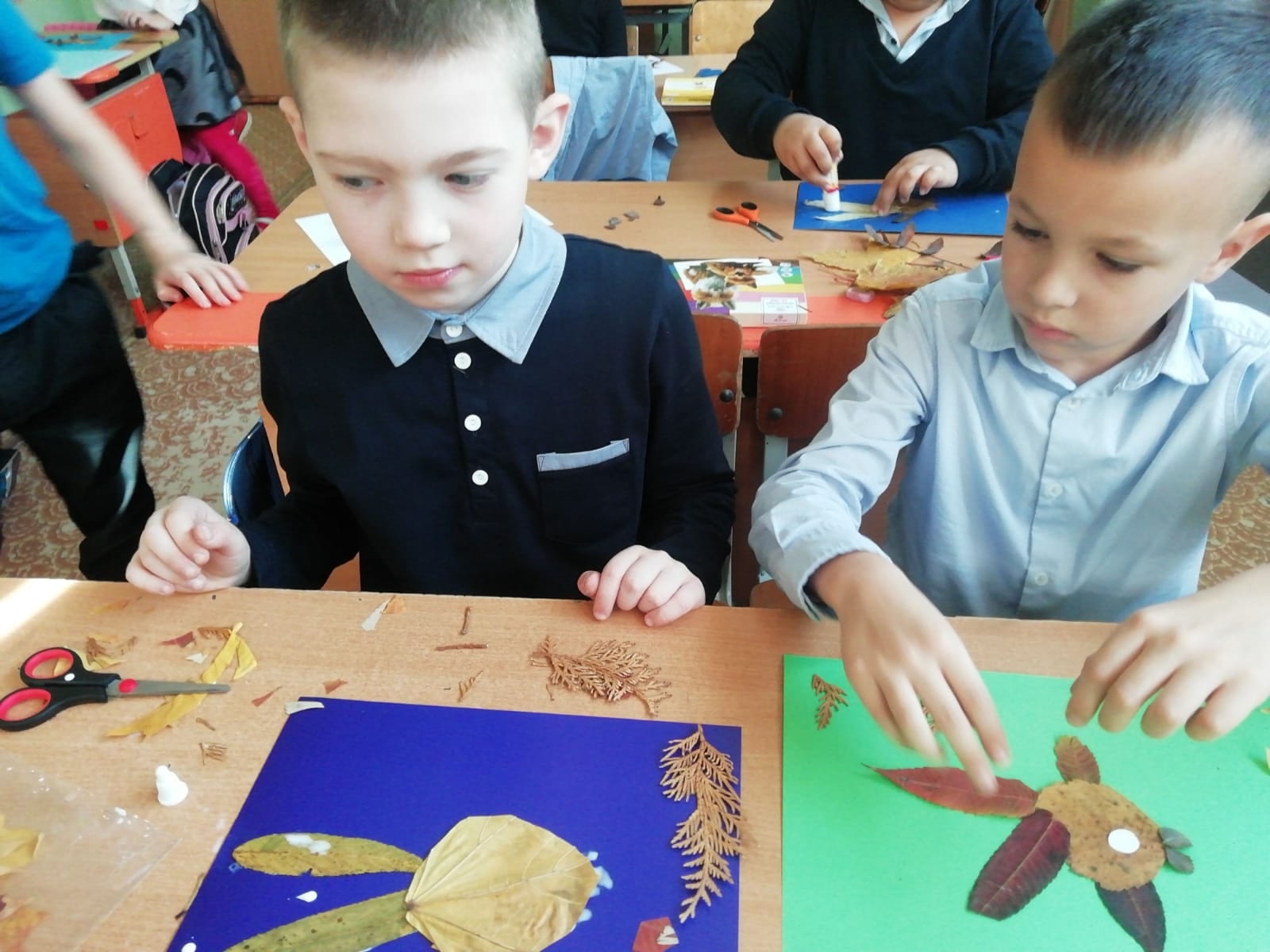 14 октября на базе МБОУ "Павловская основная школа" в объединении "Цветочный калейдоскоп" педагогом дополнительного образования Леоновой Натальей Михайловной было проведено занятие. Обучающиеся объединения отправились на прогулку, чтобы собрать разноцветные осенние листья, ставшие основой для будущих творческих шедевров. Наталья Михайловна рассказывала ребятам о том, почему листья осенью приобретают разные оттенки жёлтого, красного и коричневого цвета. Вернувшись в класс, ребята приступили к созданию оригинальных поделок из собранных листьев. Каждый проявлял фантазию и старался сделать своё изделие особенным. Получившиеся композиции оказались яркими, необычными и действительно отличными работами юных мастеров.