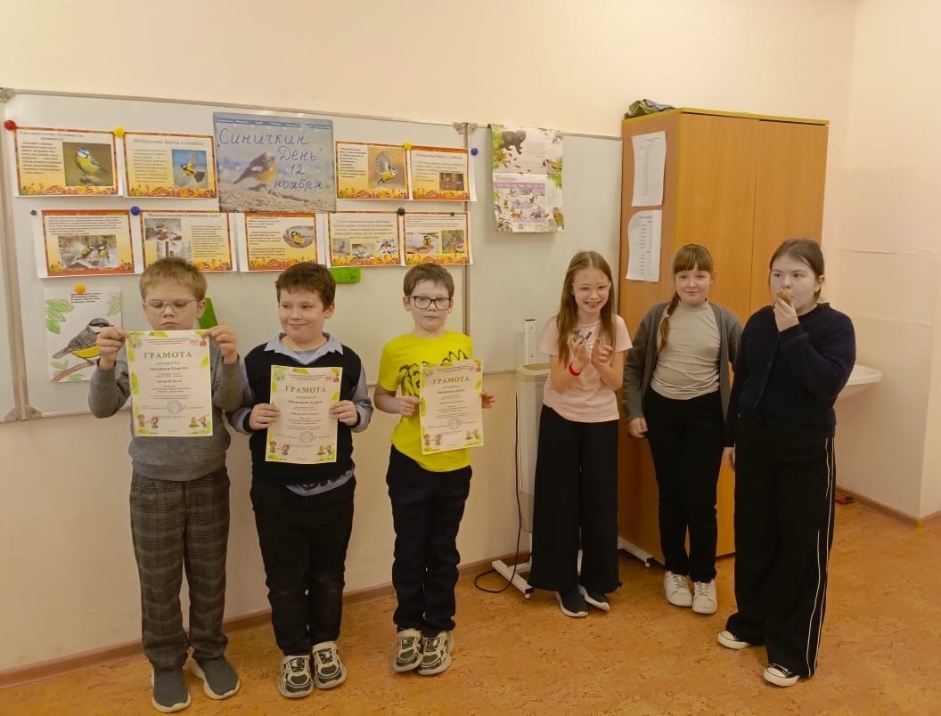 Под руководством Бруевой Инны Владимировны школьники приняли активное участие в занимательных конкурсах. Программа мероприятия была насыщена интересными заданиями: ребята с энтузиазмом отвечали на вопросы викторины, демонстрируя свои знания о зимующих птицах и особенностях синицы, отгадывали загадки, изображали голоса птиц, нарисовали рисунки и получили награды за участие в ранее проведённой областной экологической интернет-викторине "Эколята-друзья леса"!